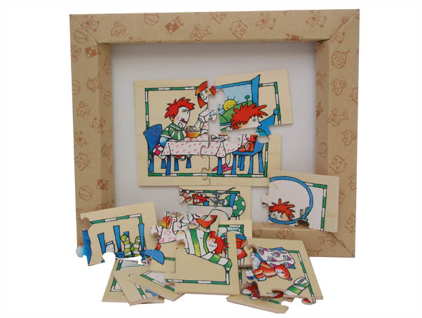 | Nombre: TROMPO Edad: 2 años+ Núm. piezas/contenido: marco+ 5 piezas Medidas: 19,5 x 19,5 x 1 cm. | |