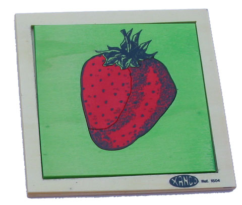 | Nombre: FRESA Edad: 2 años+ Núm. piezas/contenido: marco+ 4 piezas Medidas: 19,5 x 19,5 x 1 cm. | |